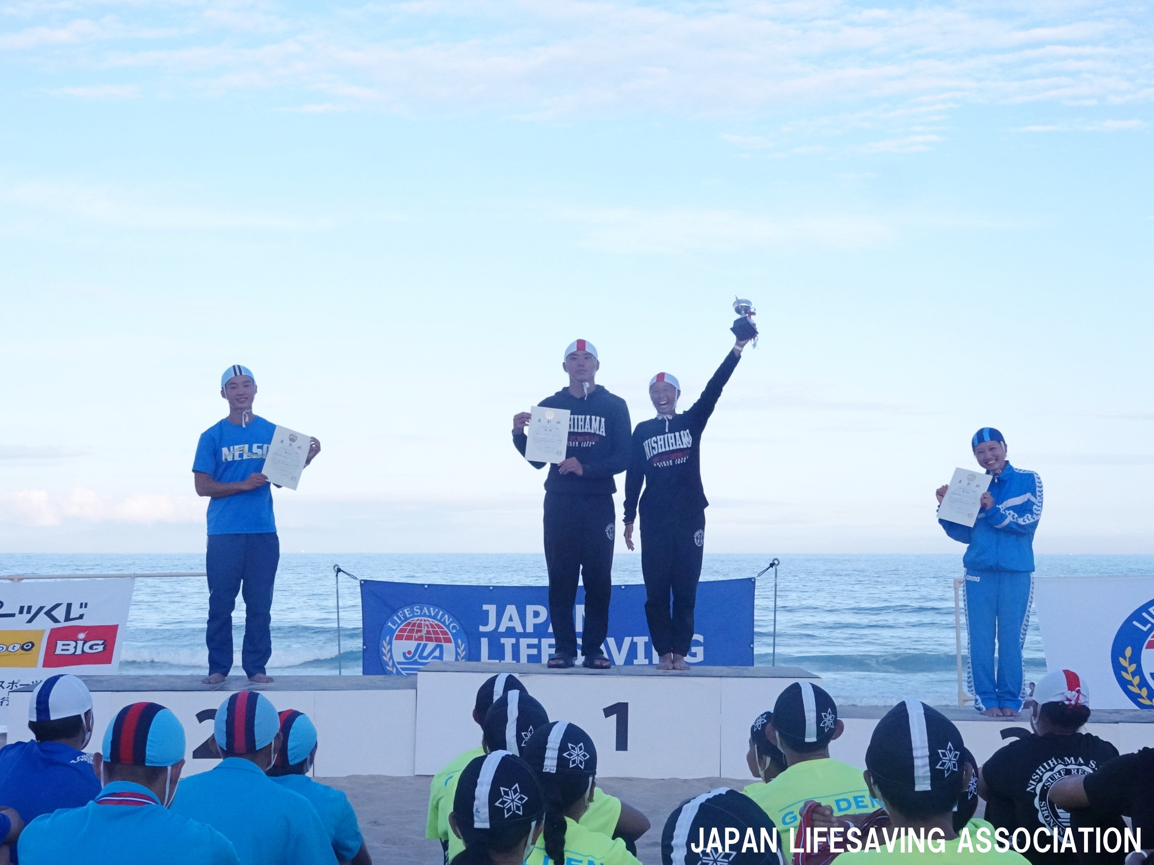大会全体を通して、オーシャン種目は西浜サーフライフセービングクラブ、ビーチ種目は鎌倉ライフガードが好成績を残していました。海での練習を頻繁に行い、学生、大人関係なく一緒に練習を行う成果が見られました。オーシャン種目で必要とされるスイムは、スイミングスクールに通っていた過去を持つ学生が多い、日本体育大学荏原高等学校ライフセービングクラブが結果を残しました。