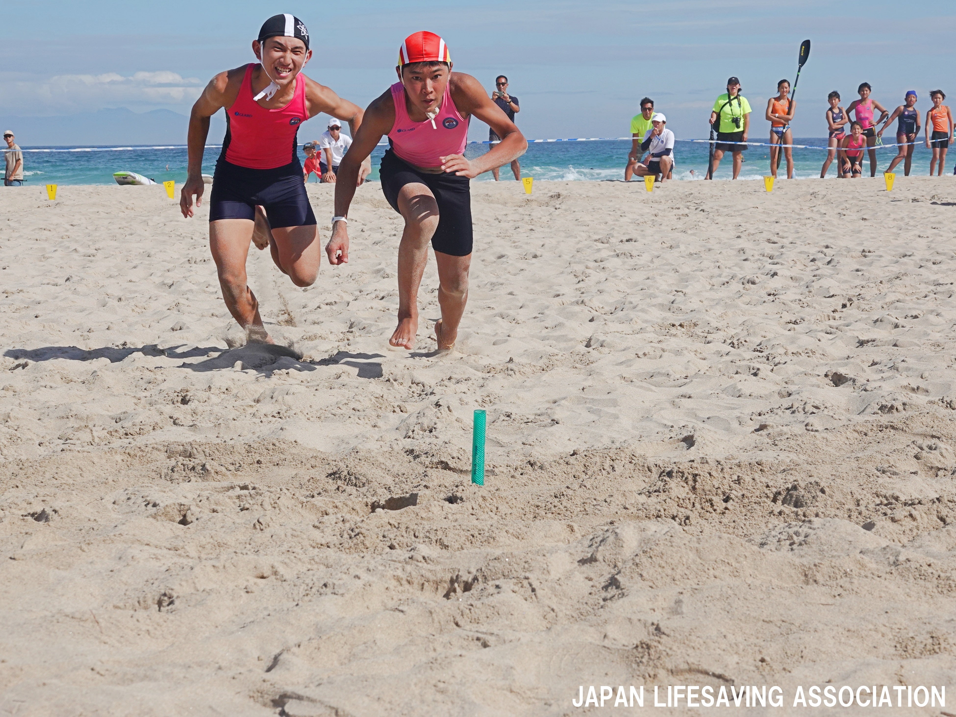 ビーチ種目ではU18で西浜サーフライフセービングクラブの岡安海斗選手、日本体育大学荏原高等学校ライフセービングクラブの岸愛姫選手が2冠を果たしました。近年、ビーチフラッグスの起き上がりよりもスプリント能力が高いことが求められています。実際に世界大会で活躍する海外選手は起き上がりの速さより、スプリント能力が高いと言われています。