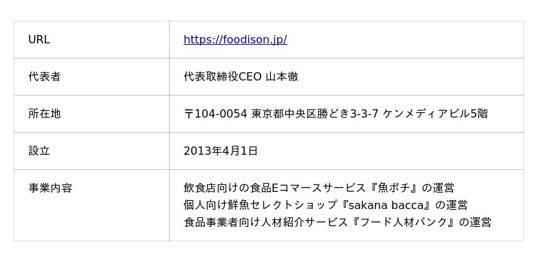 「生鮮流通に新しい循環を」をビジョンに掲げる株式会社フーディソン(本社:東京都中央区、代表取締役CEO山本徹、証券コード:7114、以下 当社)は、当社が運営する飲食店向け生鮮EC『魚ポチ(うおぽち)』において、株式会社インフォマート(本社:東京都港区、代表取締役社長 中島 健、証券コード:2492、以下 インフォマート)が提供する『BtoBプラットフォーム』とのデータ連携を開始したことをお知らせいたします。