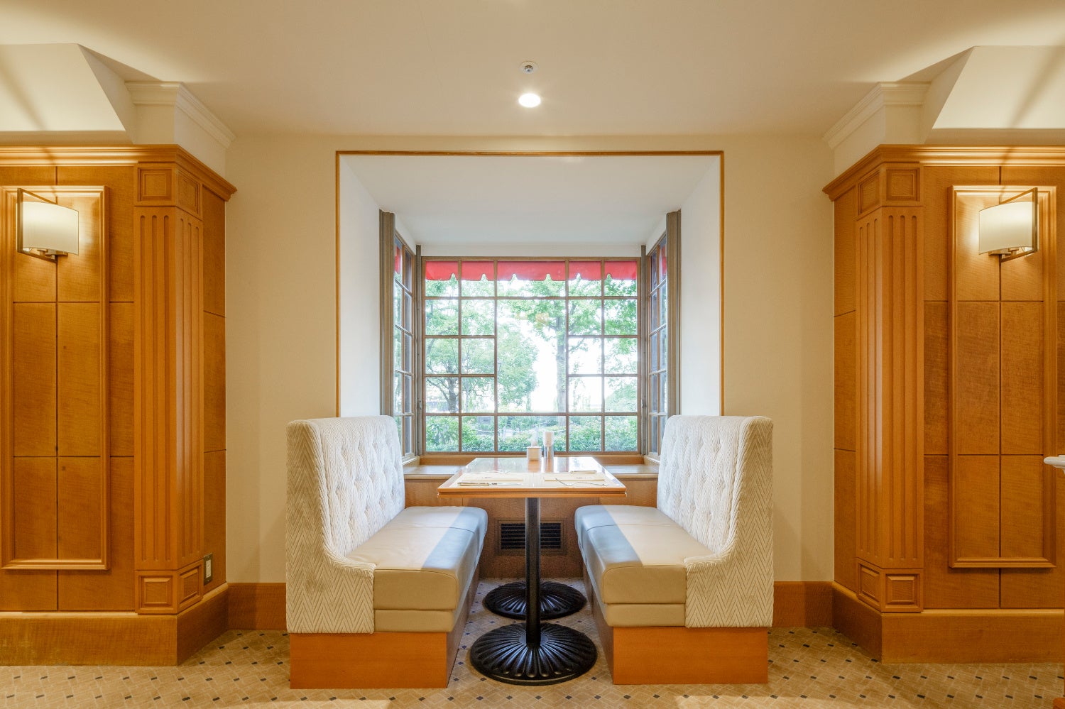 山下公園に面したカフェレストラン。ホテルニューグランド発祥メニューである「シーフードドリア」「スパゲッティ ナポリタン」「プリン・ア・ラ・モード」をはじめ、多彩な洋食メニューをお楽しみいただけます。外光をたっぷりと感じられる明るく温かな店内で、ティータイムからお食事まで、幅広くご利用いただけます。