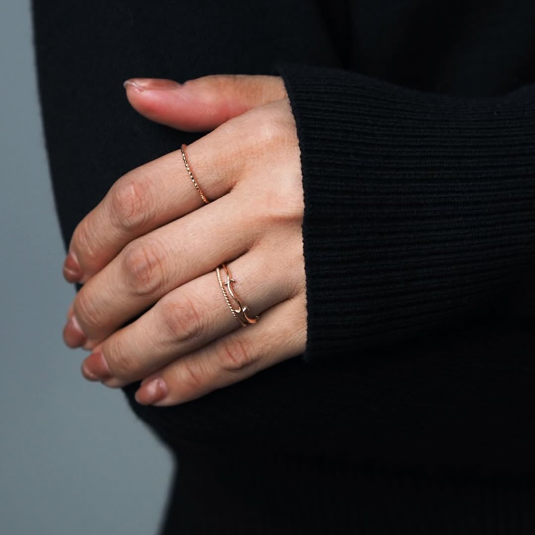 一本で着けても指先を華奢に見せ、重ねづけすれば自然な立体感が生まれます。