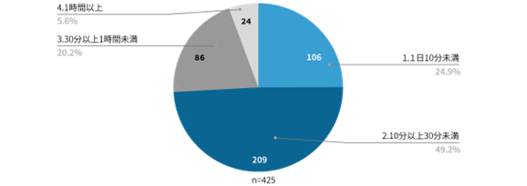 1日にどれくらいの時間をニュース摂取に費やすかという問いに対し、49.2%が「10~30分」と回答。1日10分未満との答えも24.9%ありました。仕事や自己投資に使う時間を優先し、ニュースのチェックにかけられる時間が足りないという傾向が示されています。