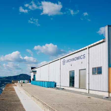 磯焼けの原因となる痩せウニを漁業者から買い取り、独自開発した陸上閉鎖循環式畜養システムで育成。水温・酸素・流速を常時制御し、天然藻類由来の独自配合飼料で育てることにより、短期間で高品質な食用ウニへと再生させています。