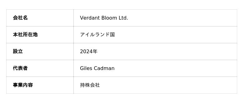 ウニノミクス株式会社(本社:東京都千代田区、代表取締役社長:石田晋太郎、以下ウニノミクス)は、親会社であるVerdant Bloom Ltd.(本社:アイルランド国)が、株式会社みずほ銀行(頭取:加藤勝彦、以下みずほ銀行)より出資を受けたことをお知らせいたします。