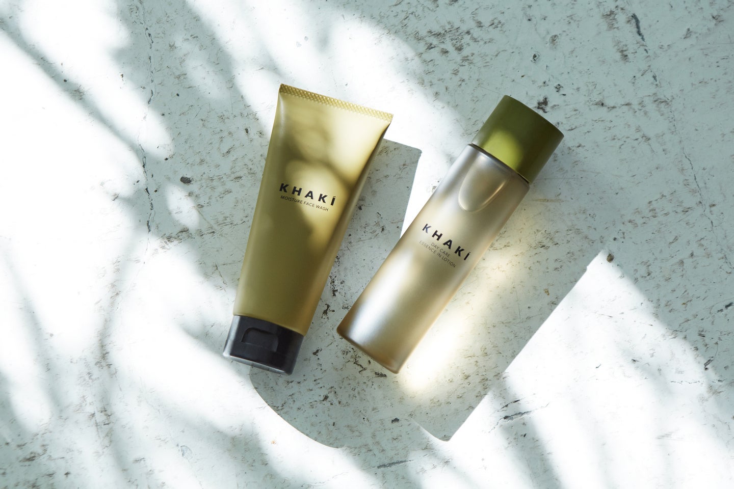 KHAKIのスキンケアは、キャンプ、ゴルフ、サーフィン、サウナ、音楽フェスなど外遊びが好きなアクティブメンズに向けた紫外線ケア成分「ビタミンC誘導体」や肌荒れを改善する「グリチルリチン酸ジカリウム」などの薬用成分を配合。