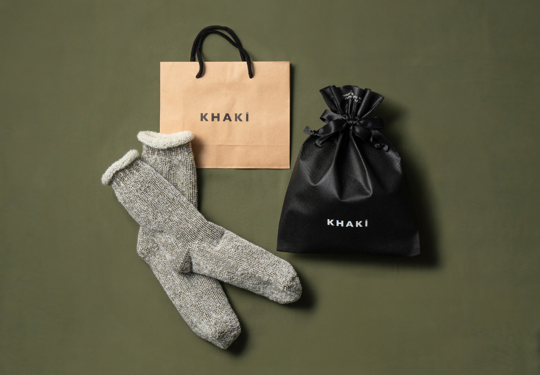 ・KHAKI ルームソックス 商品ページ https://www.khaki.jp/products/gift_socks