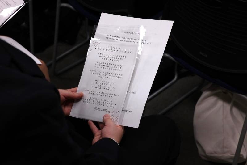 講演会ではまず、渡辺さんの母・達子さんが、当時や家族の様子を振り返りながら、「被害者遺族だからこう感じるはず、と決めつけないでほしい」と語り、遺族それぞれが抱く感情は異なることを、自身の経験をもとに伝えました。また、万が一に備え、亡くなった際に誰へ連絡してほしいかをあらかじめまとめておくことの大切さにも触れました。さらに、辛い思いをしているのは遺族だけではなく、生存した京都アニメーション職員やけがを負った方、友人など、多くの人が心に傷を負っていると話しました。事件後には京都府警からカウンセリングを勧められ、支援を受けたことで心が軽くなった経験も紹介しました。