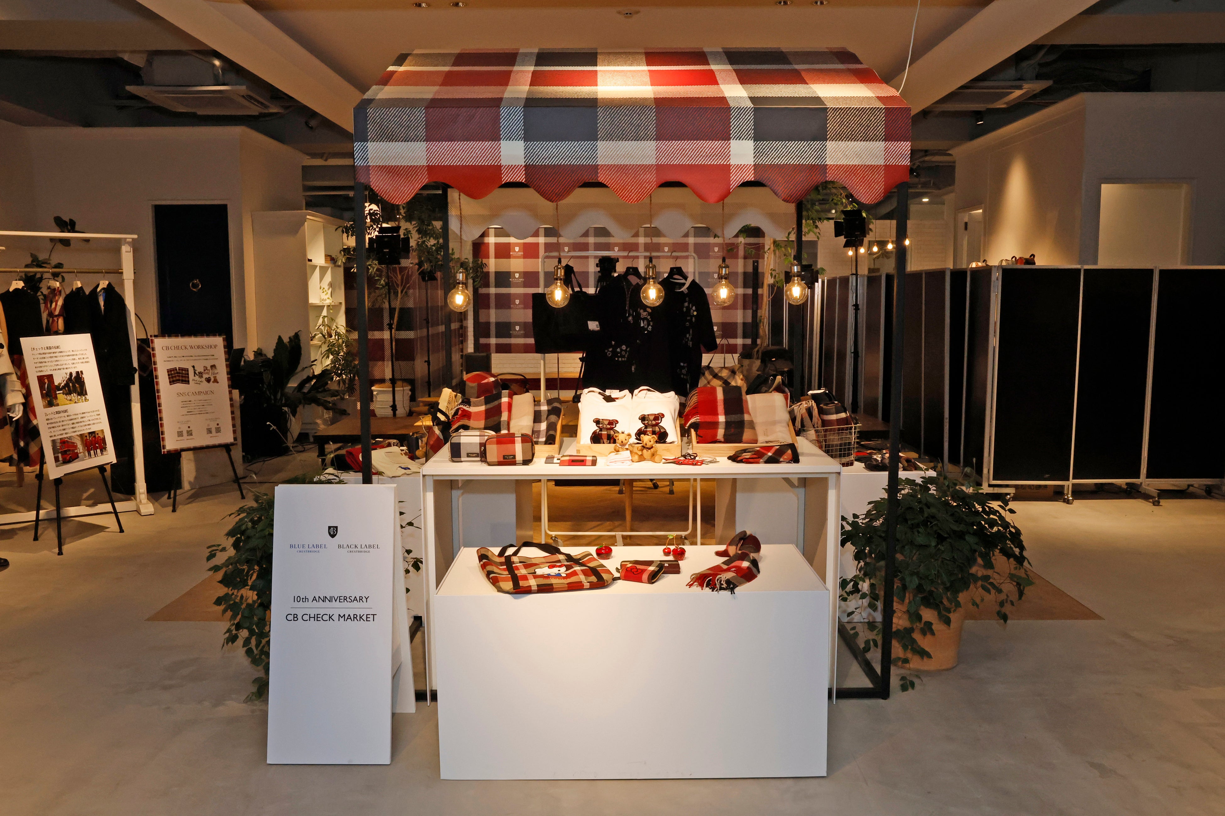 イベント開催期間中、原宿本店のウィンドウはCB CHEKで埋め尽くされた特別な外装にチェンジ。店内には、イギリスのマーケットをイメージしたCB CHECKのアイテムが並ぶ什器が設置されるほか、CB CHECKに込められた物語のパネルが展示されます。