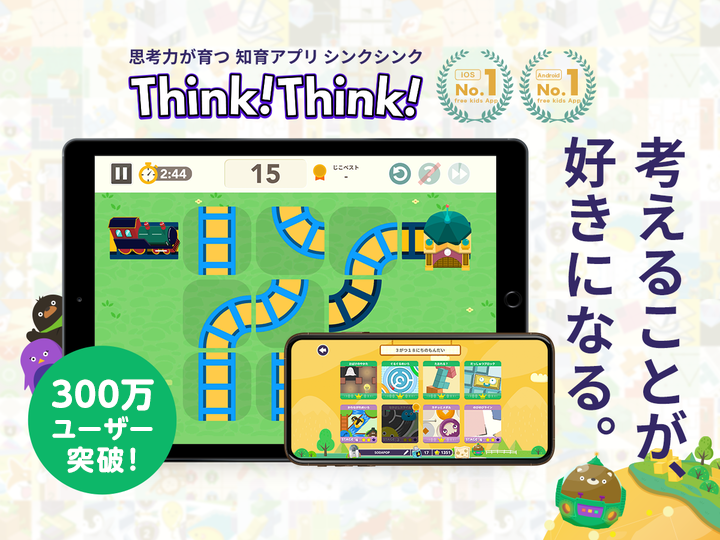 思考力を育てる上で土台となる5分野(空間認識・平面認識・試行錯誤・論理・数的処理)を、網羅的に楽しみながら学べるアプリとして、2016年より各アプリストアで配信をスタートし、2024年4月で累計ユーザー数300万人を突破いたしました。