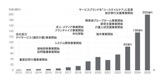 特に、障害福祉分野においては国内最大規模の障害者向け重度訪問介護事業者として、全国にサービスを広げています。 今後も全国各地に新規事業所・新規事業を展開し、日本の介護に関わるあらゆる課題解決に挑戦してまいります。