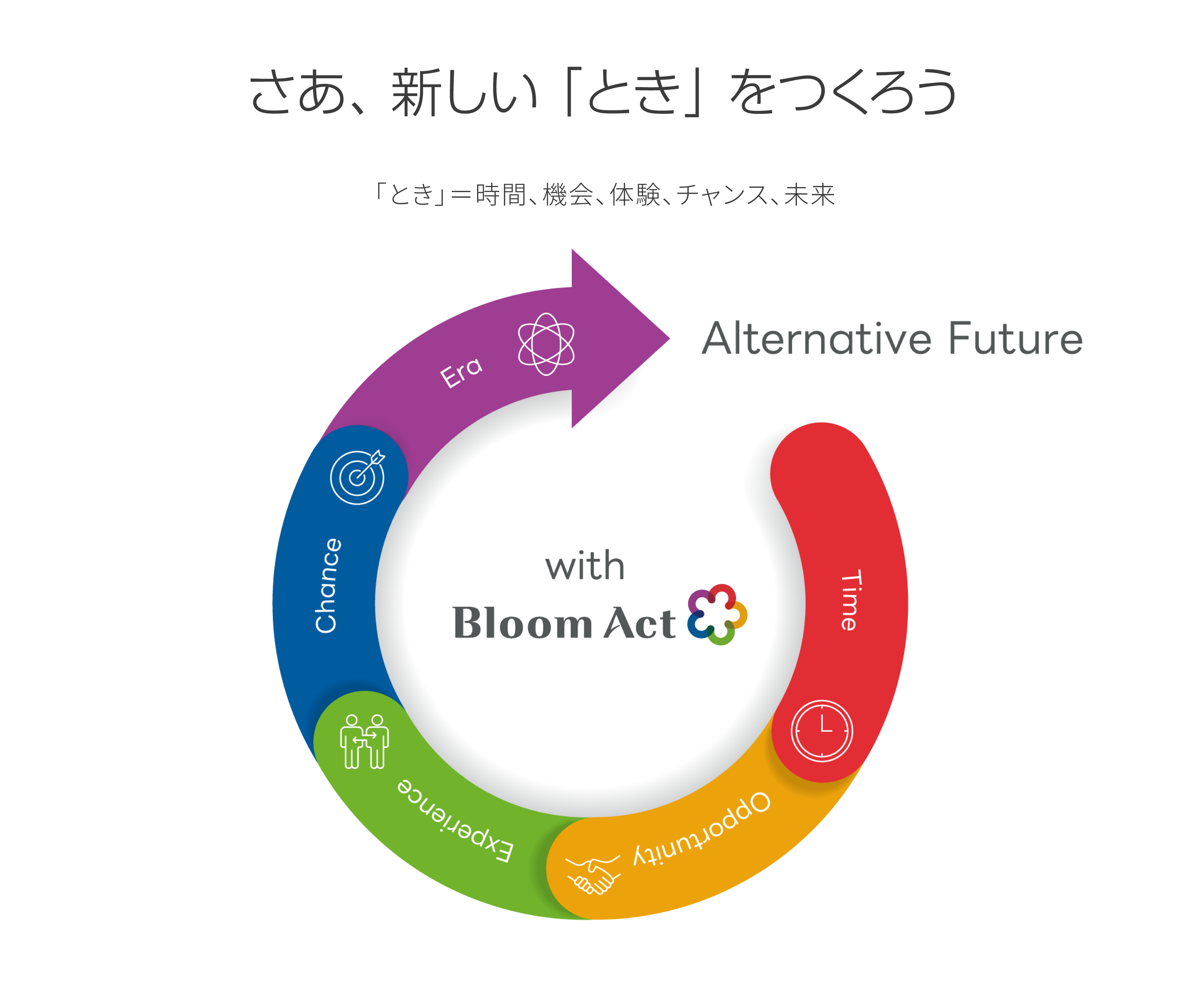 私たち『Bloom Act』は、経営資源の一つである「時間」という価値に焦点をあて、企業運営における新たなソリューションを提供している会社です。一人ひとりの可能性や生産性を最大限に引き出すことが、未来の「新しい働き方」を創り、企業の成長、より豊かな社会へ繋がると信じ、その一役を担う企業となるべく成長を続けます。【コーポレートスローガン】