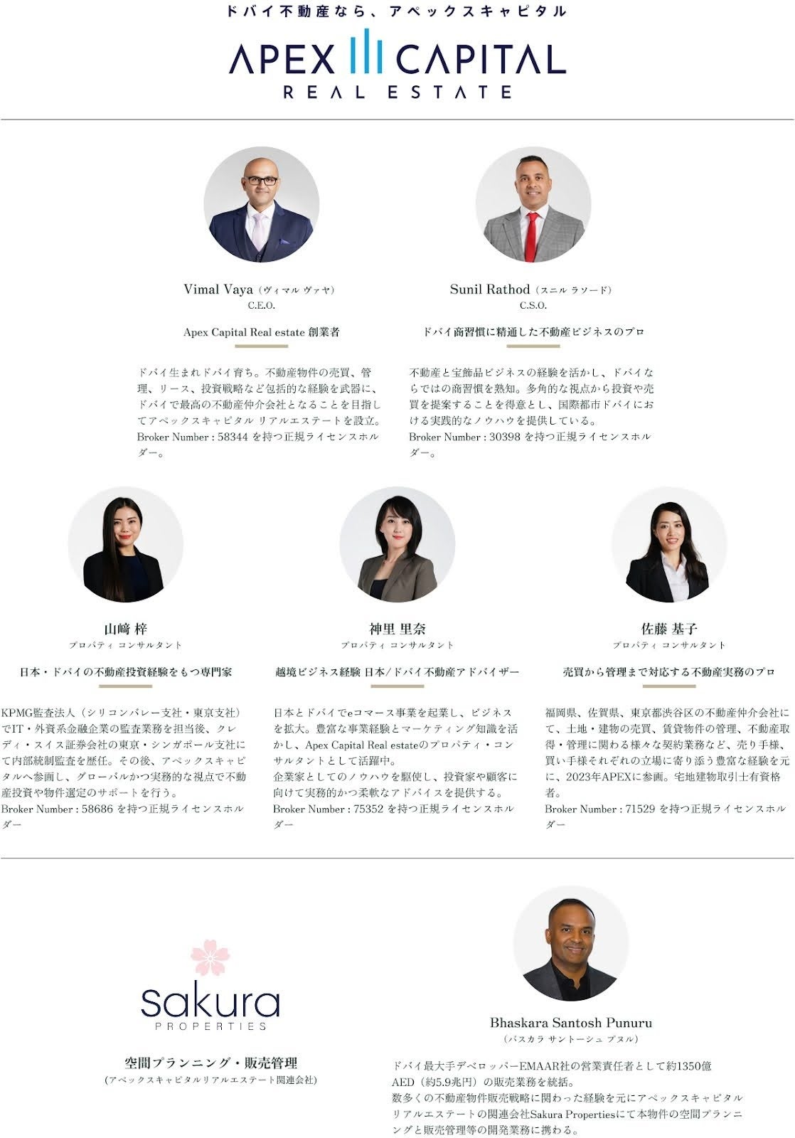 - Sakura Properties:Bhaskara Santosh Punuru(EMAAR社での実務経験を経て、空間プランニング/販売管理を担当)