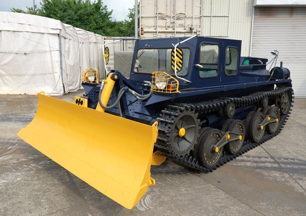 元車両は日本陸軍が昭和16年に配備した三菱重工製「九五式軽戦車」。戦後ブルドーザーに改造され北海道の営林署で活躍後、地元製材所に払い下げとなり、昭和50年ごろに現在の形に改造され、数年前まで道東で除雪等に活躍した。2023年に当会が購入し一年余りの期間とクラウドファンディングにより1600万円の支援をいただき修復作業を完了した。