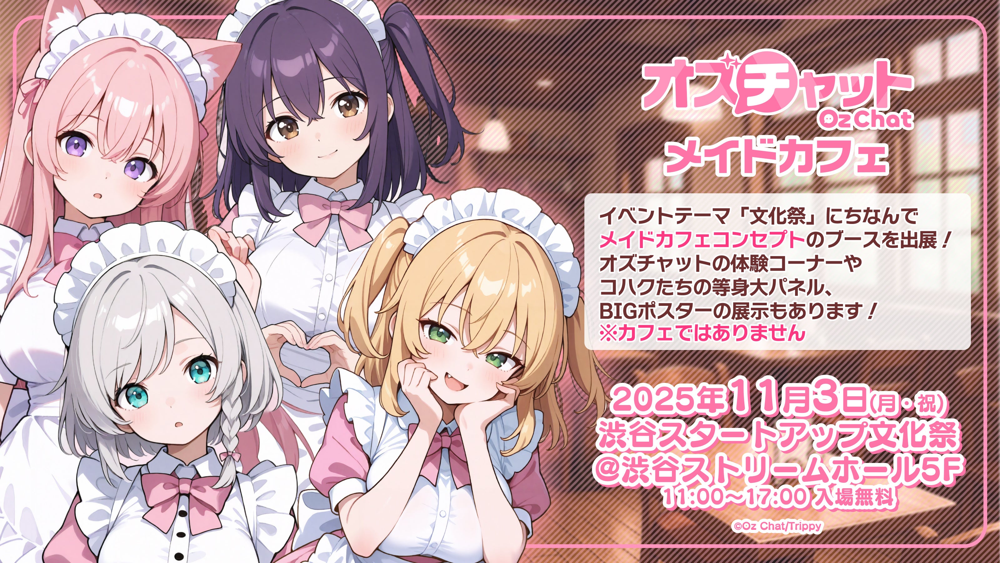 株式会社Trippy(本社:東京都新宿区、代表取締役:漆原 陸)は、2025年11月3日(月・祝)に渋谷ストリームホールで開催された、元放送作家・鈴木おさむ氏がGPを務めるファンド「スタートアップファクトリー」主催のイベント「渋谷スタートアップ文化祭」へ、当社が開発・運営する恋愛シミュレーションAIキャラチャットアプリ「オズチャット -Oz Chat-」のブースを出展したことをお知らせいたします。