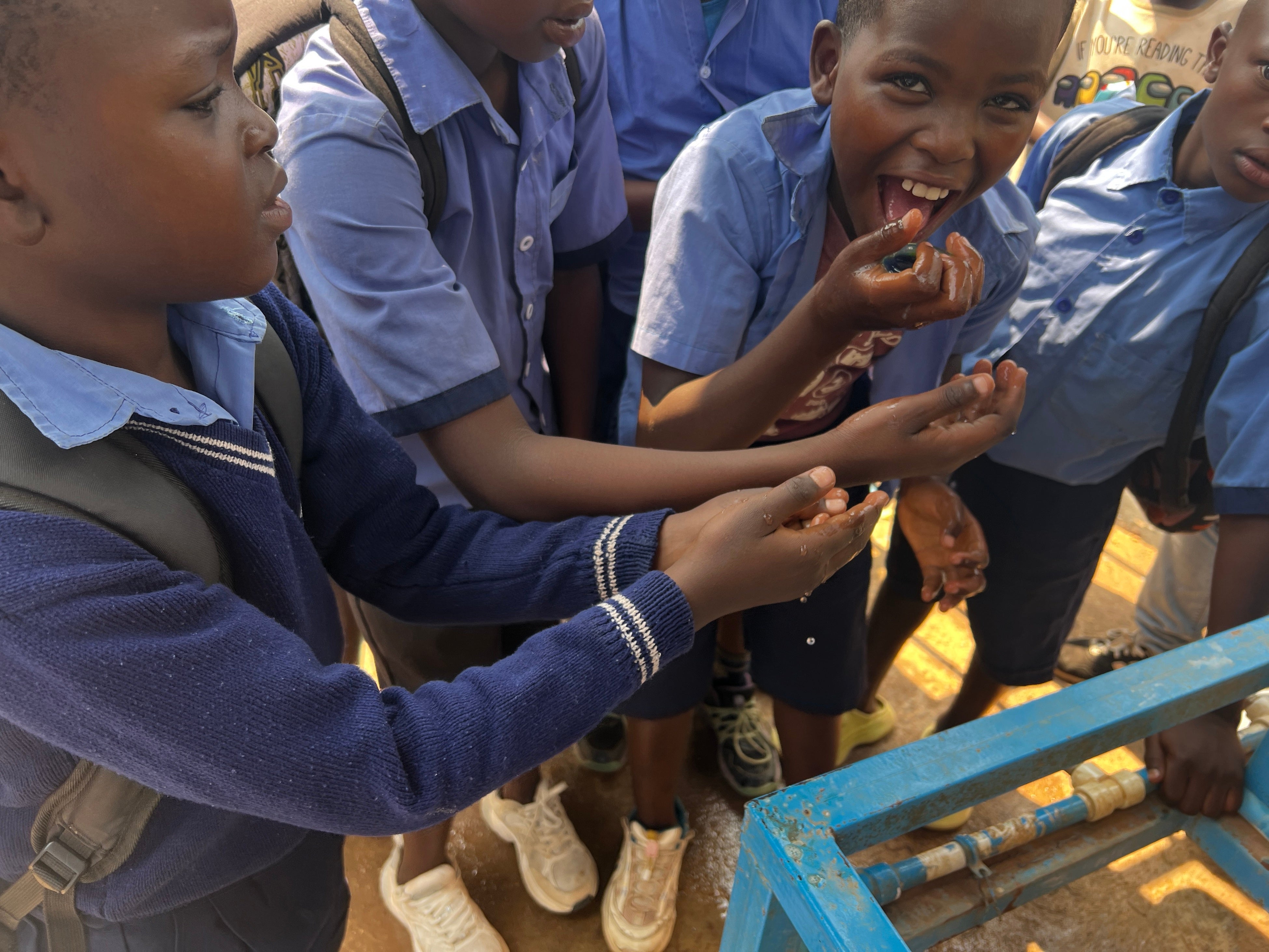 小学生が作ったカラフルな石けんをルワンダの衛生教育に活用。児童の解説動画付きで、“つくり方”も一緒に渡すのがポイントです。