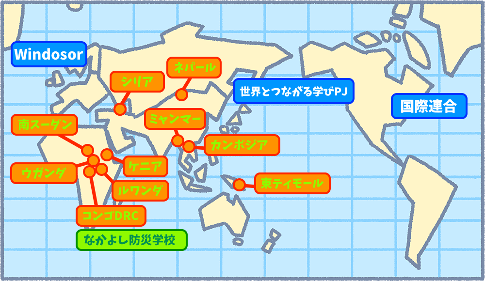 なかよし学園の活動国。紛争地や貧困地域を含む世界各国で活動を行っている。