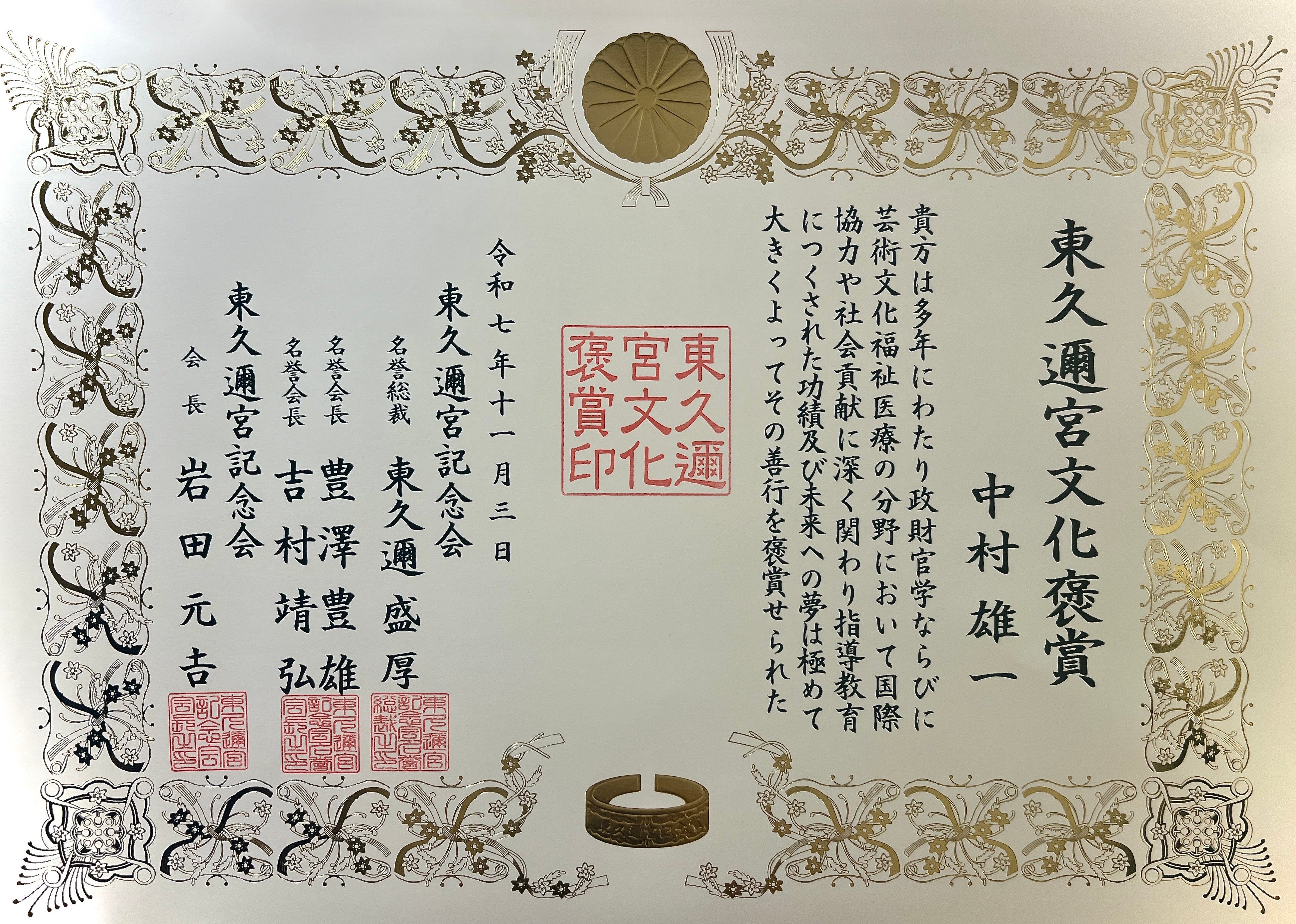 そして2025年11月、長年の国際協力と教育実践が総合的に評価され、高松宮記念賞・秩父宮記念賞と共に、「三大宮賞」と云われている賞であり『大衆のノーベル賞』とも言われている東久邇宮文化褒賞を受賞。大変名誉な受賞となりましたが、中村はこれを通過点と捉え、これからもTEAMジャパンで日本の子ども・教員・地域と世界の現場をつなぎ、誰も取り残さない平和の実装をさらに前に進めていきます。
