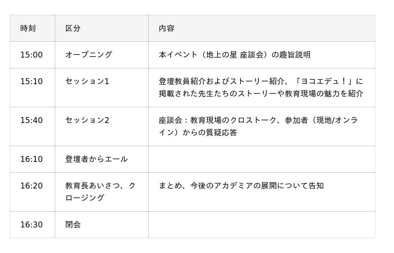横浜教育イノベーション・アカデミア「地上の星に聞く!」座談会を開催します!