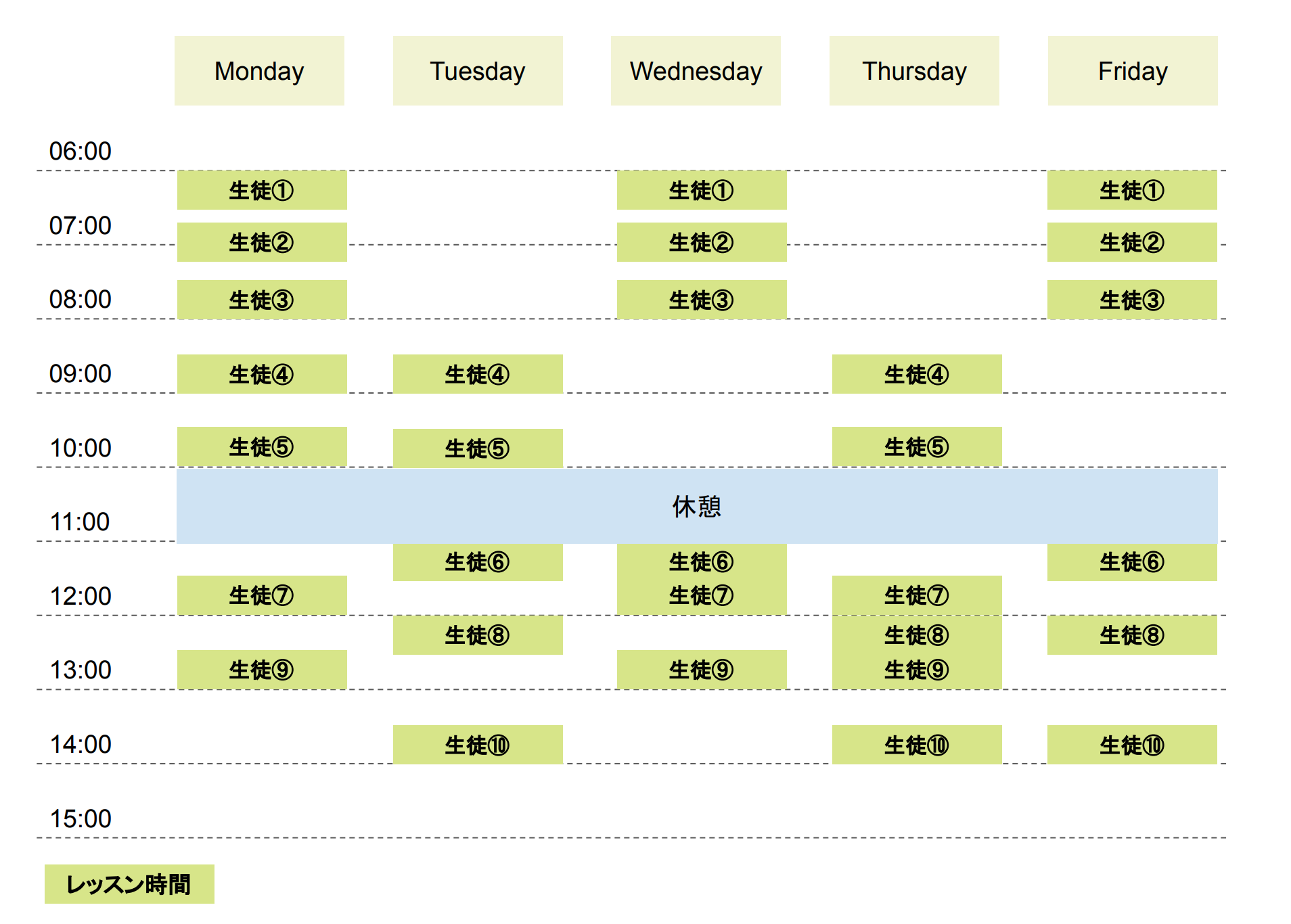 ※レッスン時間の合間に、添削やレッスンの準備を行います。
