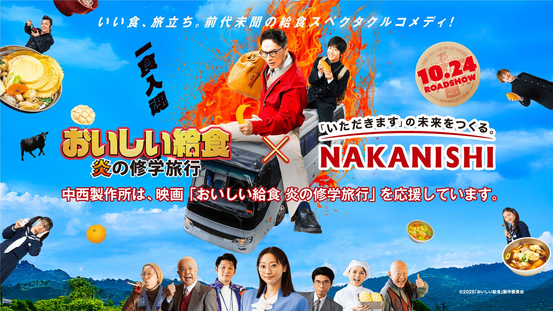 株式会社中西製作所(東証スタンダード:5941、本社:大阪市生野区、代表取締役社長:中西一真)はおいしく、安全な給食文化を応援するため、映画『おいしい給食 炎の修学旅行』(2025年10月24日より公開)に協賛いたしました。