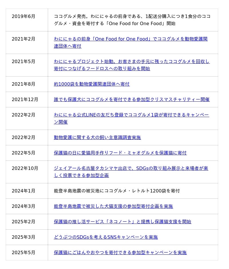 これを記念し、2025年11月13日(木)から11月25日(火)までの期間、当社ブランドである「ココグルメ」「ミャオグルメ」のSNSアカウントと連動した「保護犬猫においしいごはんを届ける」SNS寄付企画を開催いたします。
