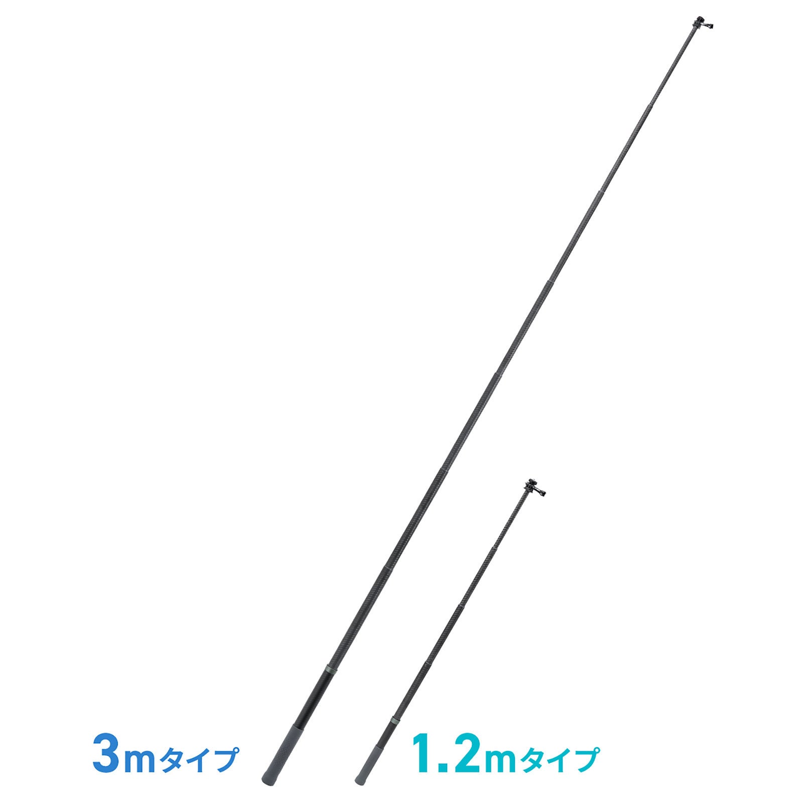 - 最大3m/1.2mまで伸びる軽量カーボン製ポールで高所撮影が可能