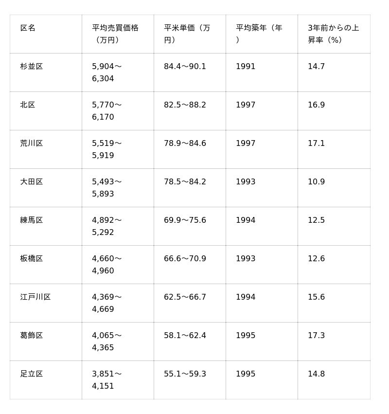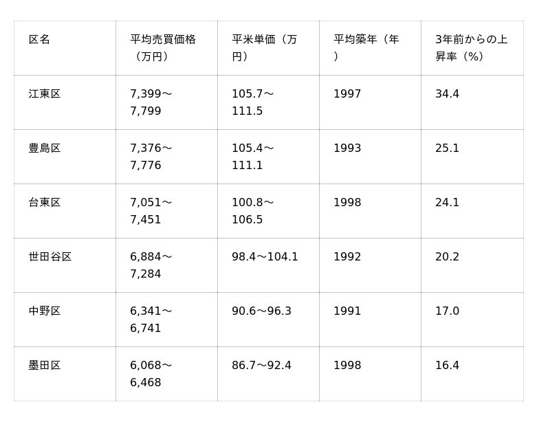 平均築年数が20年~30年以上にもかかわらず、3年前と比較して20%超~65%と高い上昇率で価格が推移している点も需要と人気の高さを裏付けています。