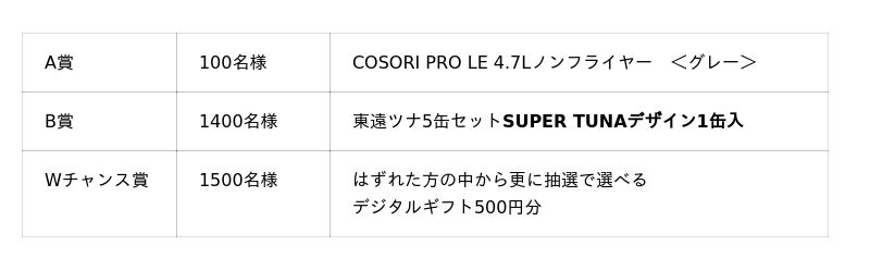 フォロー&リポストで「東遠ツナ5缶セットSUPER TUNAデザイン1缶入」が100名に当たります。