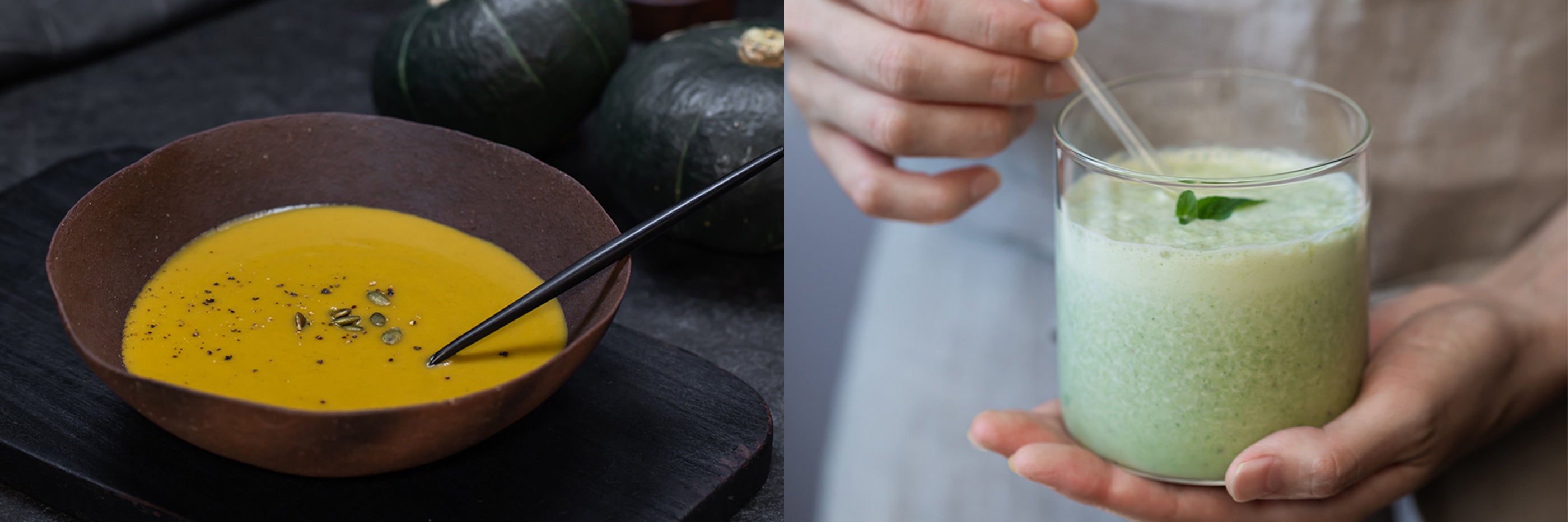 皮までまるごとかぼちゃのポタージュ、体がよろこぶgreenスムージー