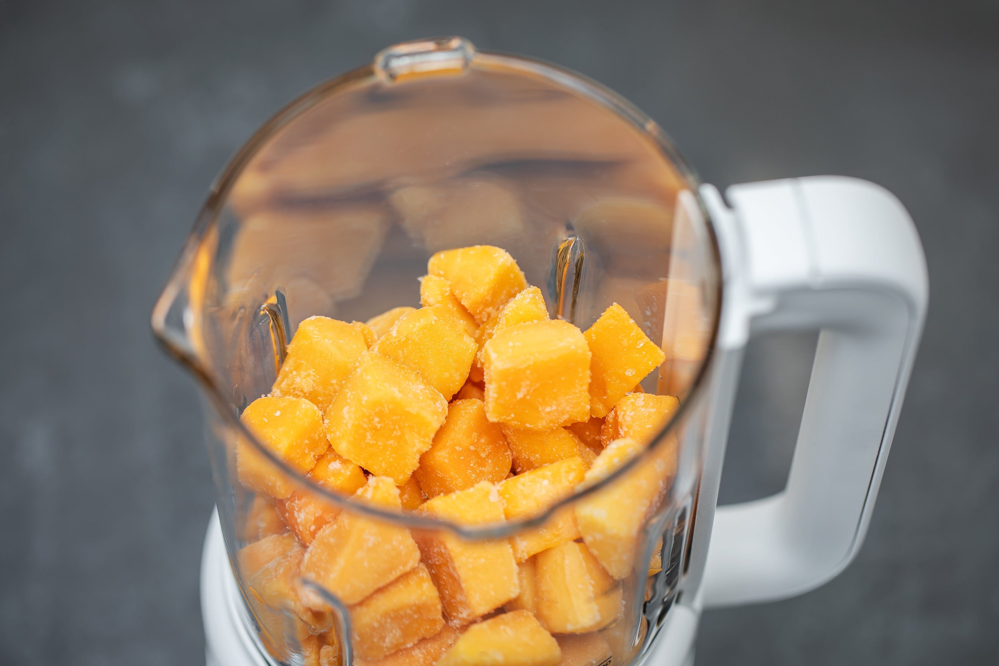食材はざく切りで容器に入れるだけなので、下ごしらえは簡単。冷凍フルーツや冷凍野菜も解凍の手間なくそのまま調理できます。さらに、ごまや大豆などの乾燥穀物もそのまま使用でき、なめらかなスープや植物性ミルクを作ることも可能です。