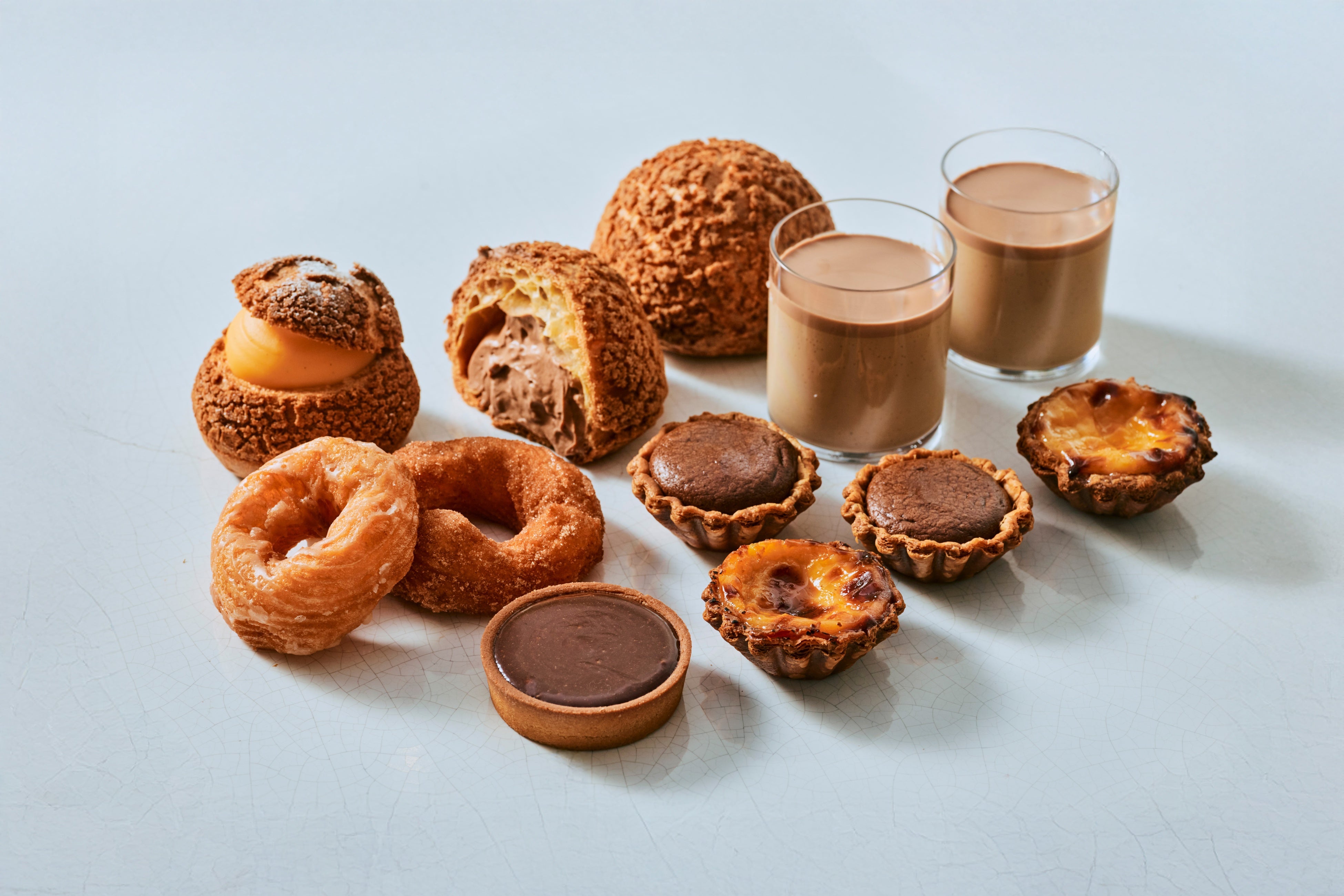 メゾンカカオから初登場する生シュークリーム。軽やかなシュー生地の中に、口溶けなめらかなバニラカスタードと生チョコカスタードを絞りました。