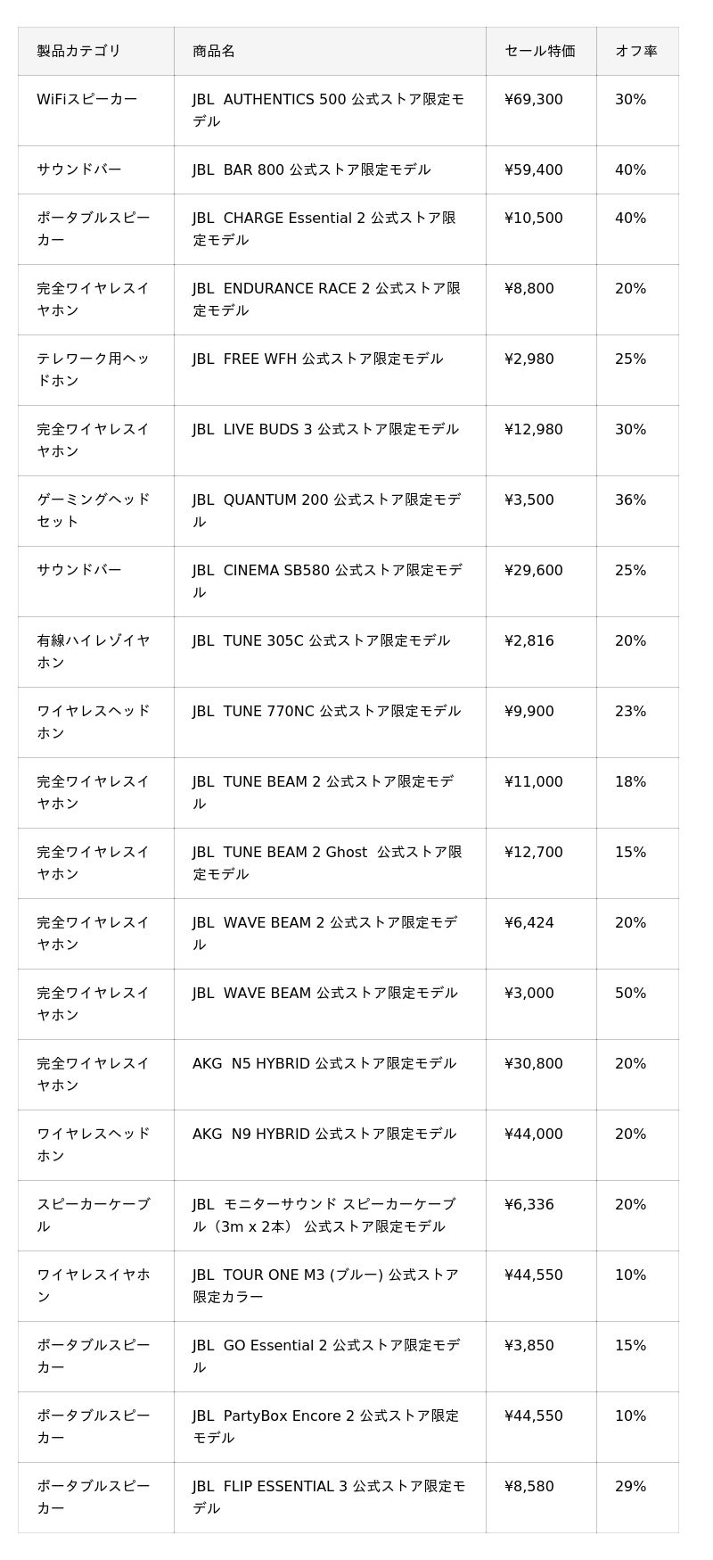 ※オフ率は、JBL公式サイトにおける2025年11月20日時点の販売価格を基準に当社が算出した数値です。