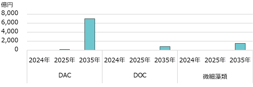 2035年市場予測 DAC7000億円 DOC800億円 微細藻類1500億円