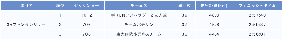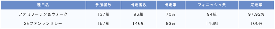 楽しみました。正午からは、メイン種目である3 時間ファンランリレーがスタート。チームでた