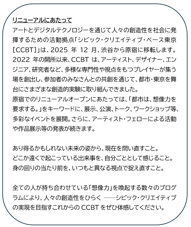 会場:シビック・クリエイティブ・ベース東京 [CCBT]