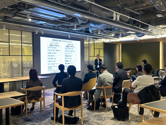 企業が抱える課題を学生と共に探究し、事業創出へとつなげる独自のフレームワークに、多くの参加者が関心を寄せていました。
