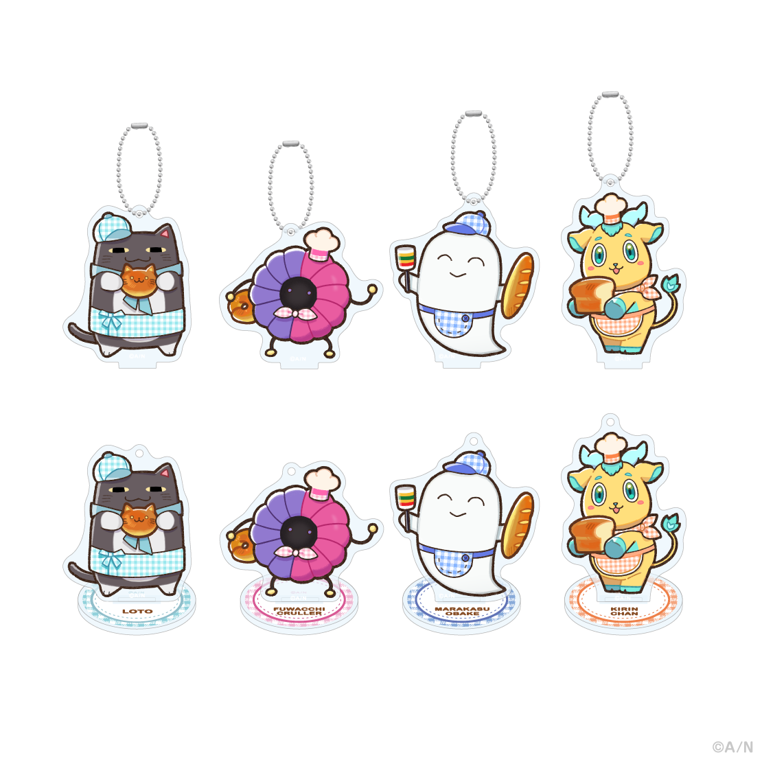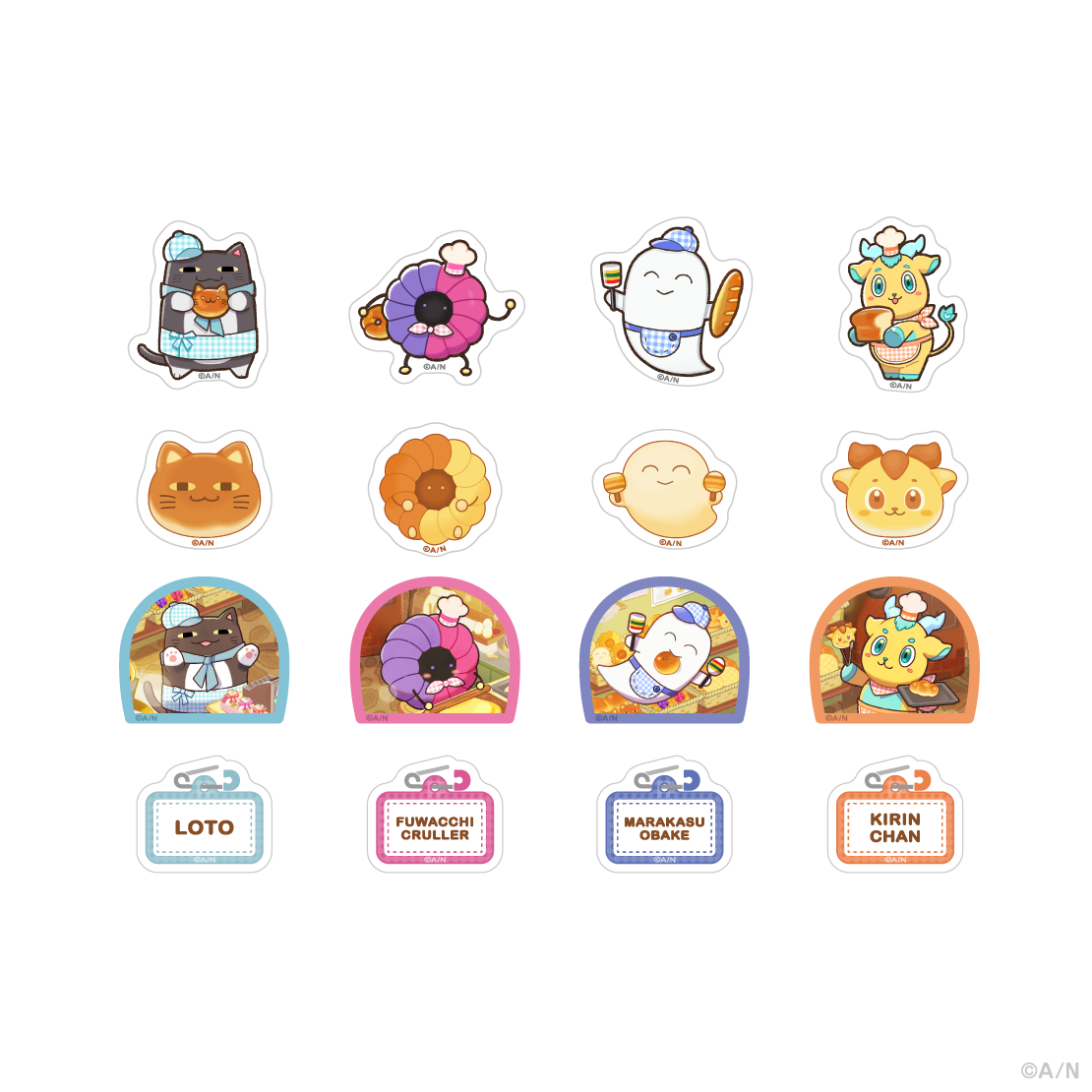 グッズラインナップは、ランダムコレクションカード、刺繍缶バッジ、アクリルスタンドキーホルダー、ステッカーセット、キャンバスボード、マグカップ、ミニプレート、トートバッグ、ぬいぐるみマスコット、パンスクイーズの10種類。
