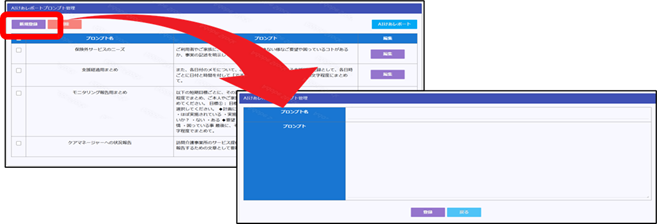これまでも「AIけあレポート」をご活用いただき、一定期間のサービス実施記録を要約しご利用者様の満足度や状態変化の把握、モニタリング報告書の作成にお役立ていただいておりましたが、AIに対する指示を追加する場合は、自由入力欄に指示文言(プロンプト)を手入力する必要がありました。