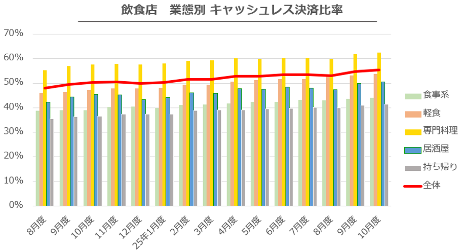 キャッシュレス決済比率は9月度から10月度にかけて、すべての業態で増加した