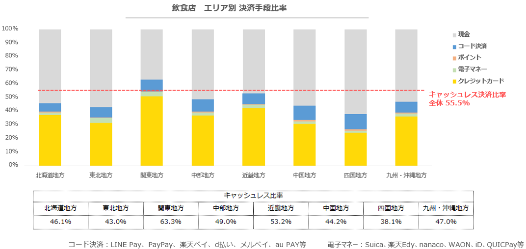 - キャッシュレス決済比率は全国で55.5%と、前月から0.7pt増加した。