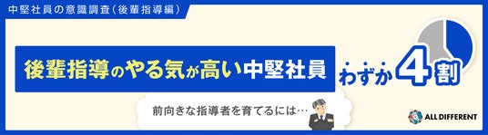 累計13,000社420万人以上の組織開発・人材育成を支援するALL DIFFERENT(オールディファレント)株式会社(所在地:東京都千代田区 代表取締役社長:眞崎大輔)および「人と組織の未来創り(R)」に関する調査・研究を行うラーニングイノベーション総合研究所(R)は、2024年12月に社会人5年目以上の役職がついていない中堅社員(*1)800人に対し意識調査を行いました。本リリースでは、中堅社員の「後輩指導」に関する調査・分析した結果を公表いたします。