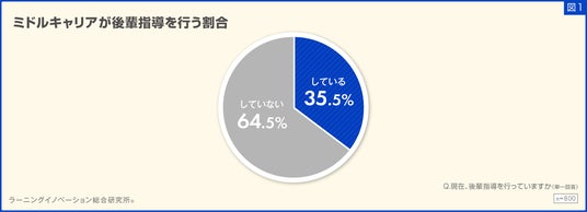 まずは、社会人5年目以上の役職がついていない中堅社員(以下、「ミドルキャリア」と記載)が、現在、後輩指導を行っているかどうかについて質問しました。結果、後輩指導を行っているミドルキャリアは35.5%、行っていないミドルキャリアは64.5%という結果となりました。(図1)