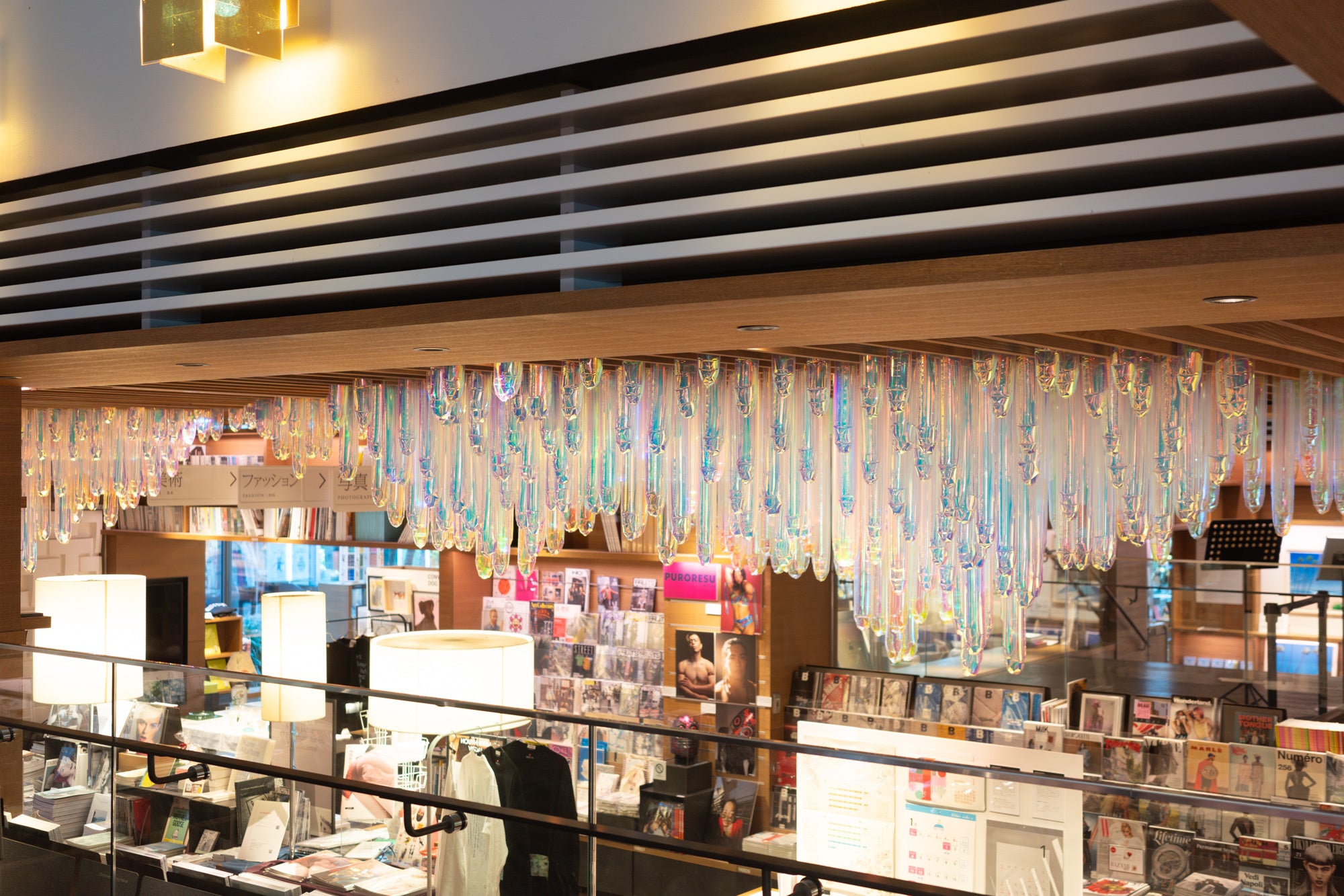 冬、代官山 蔦屋書店の物語はひとつのテーマから始まります。その中心にあるのは、ただ“飾られる”だけの存在ではなく、街の空気、人々の動き、そして空間に満ちる光りや音と絡み合いながら、絶えず変化する風景を紡ぎ出す、生きたアートです。