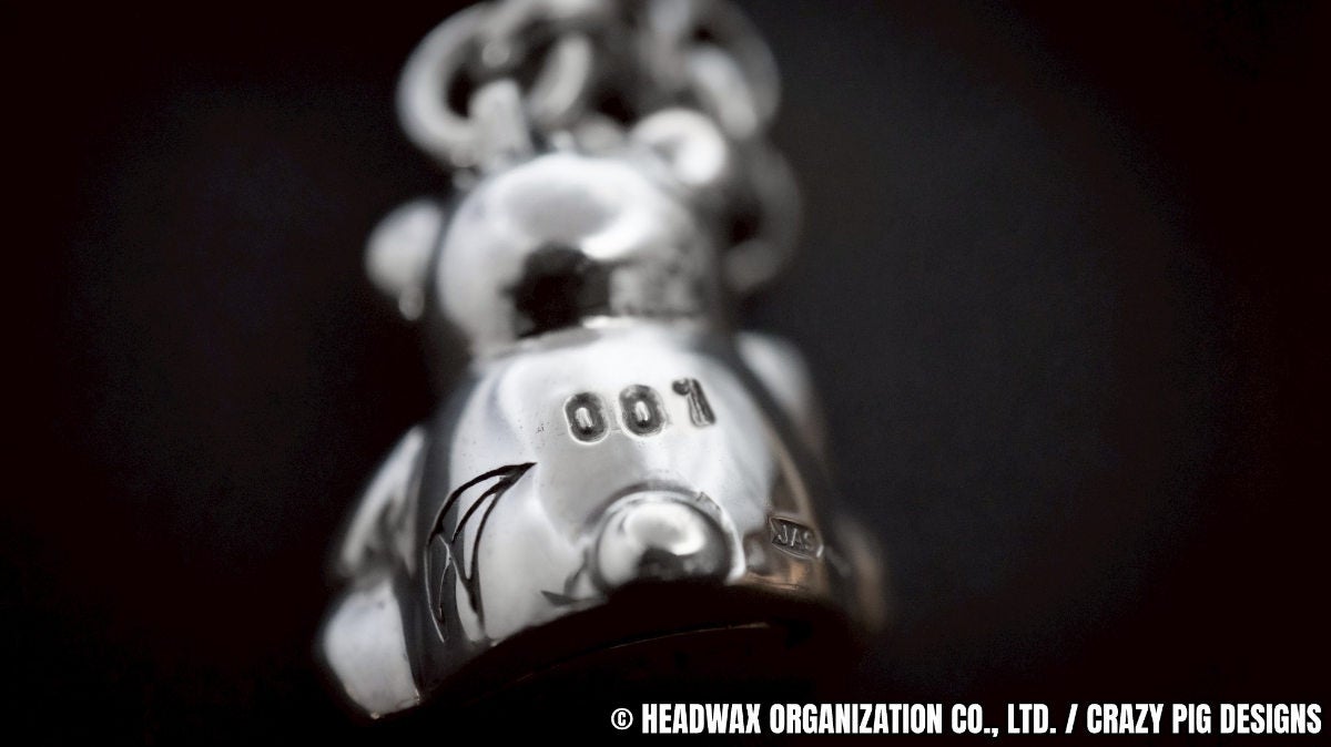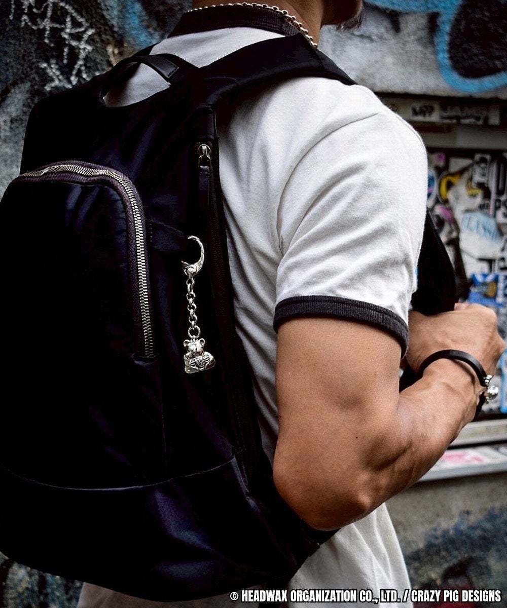 hide x CRAZY PIG DESIGNS待望のコラボレーション第3弾は、hideが生み出したアイコニックでユニークなサイコベアをモチーフに、CRAZY PIG DESIGNSの創業者であり、現在も唯一人のデザイナーを務めるアーマンド・セラがスターリングシルバーの重厚な質感を存分に活かしたキーリングです。
