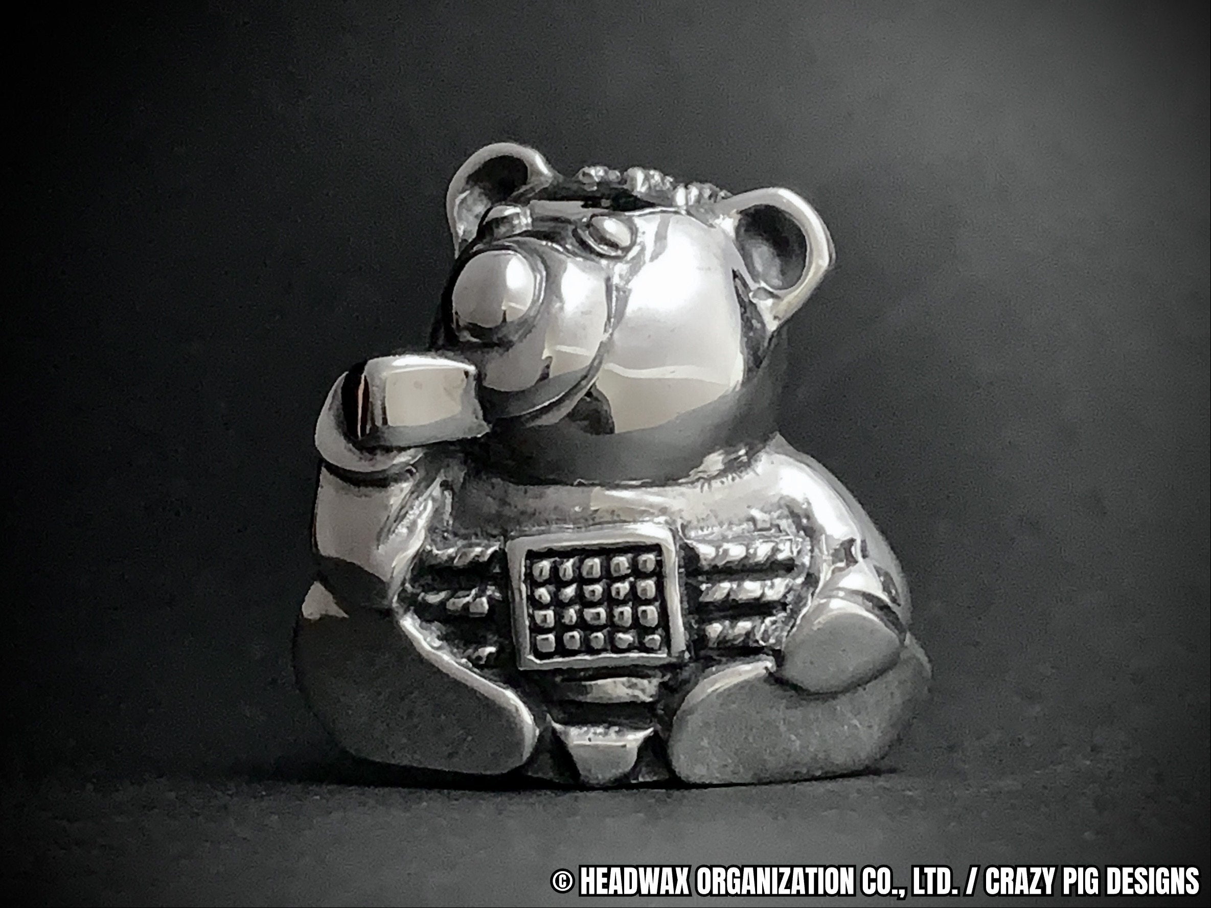 当初のコンセプトは、卓上に静かに鎮座するシルバー製のサイコベアの置物。愛らしいずんぐりとしたフォルムを忠実に再現するため、完全な立体造型によりシルバーならではの確かな重量感と緻密なディテールを実現、単なる置物を超えたジュエリーとしての本質を追求しました。