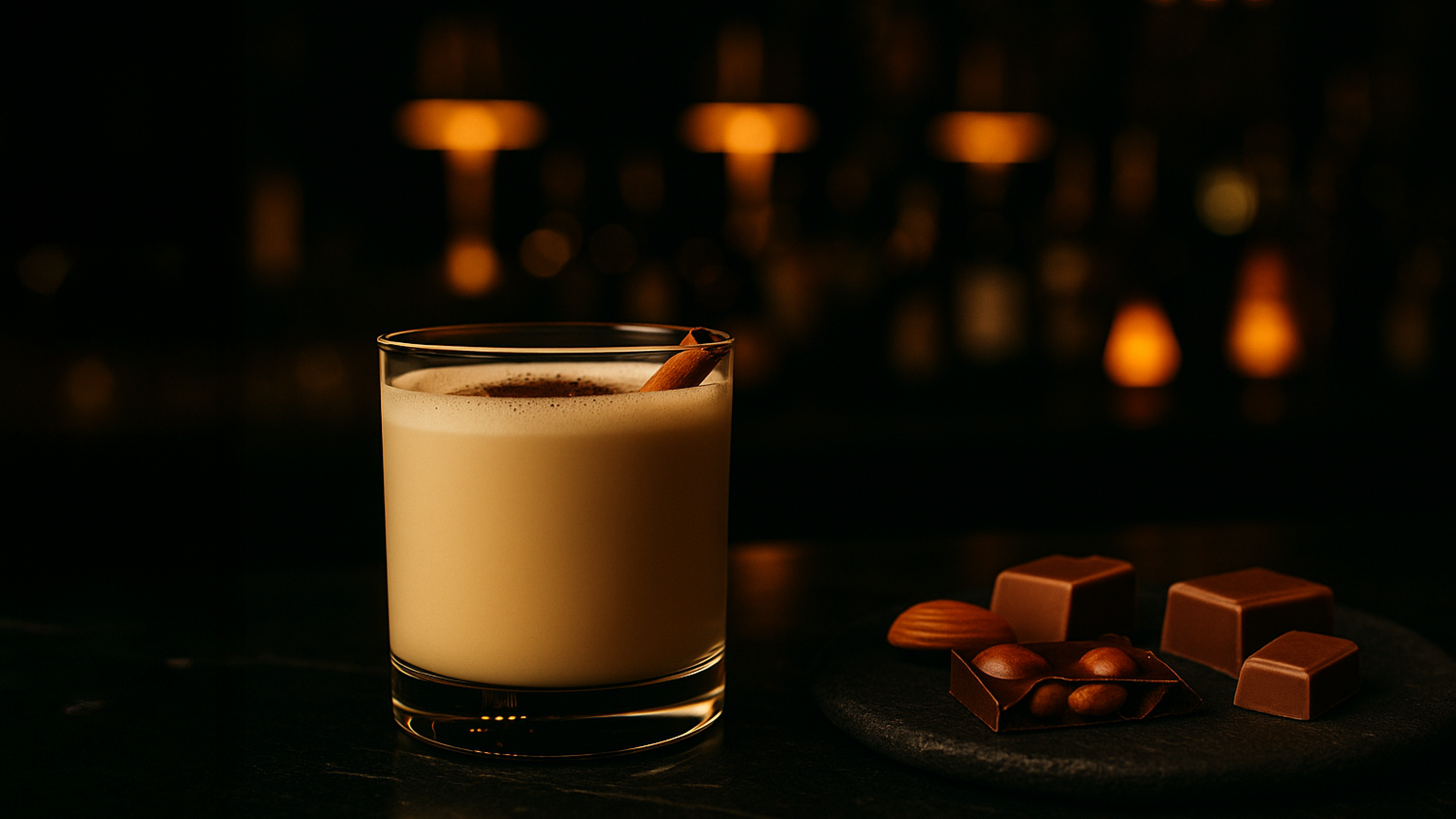 ハルディドゥードゥ(インドの伝統的なミルク飲料)とジャグリーを使ったカクテル。スパイスの香りとミルク、そこにダークラムの甘さを加わりナイトキャップにもぴったり。