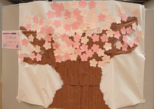 様々な体験を通じて、専門分野への憧れ、身近なロールモデルへの想い、患者さんに寄り添う姿勢など、多様な「なりたい看護師像」が生まれました。この桜の木は、中高生たちの未来への一歩を象徴するものとなりました。