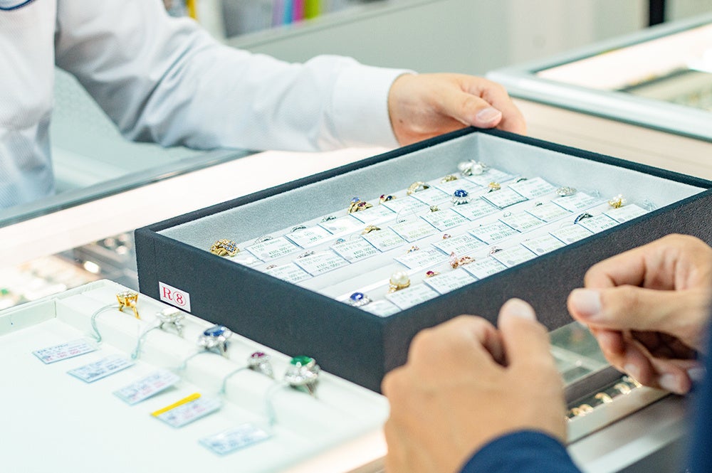 店舗で実物の確認も可能です。営業日につきましては、宝正オンラインのお知らせをご確認ください。