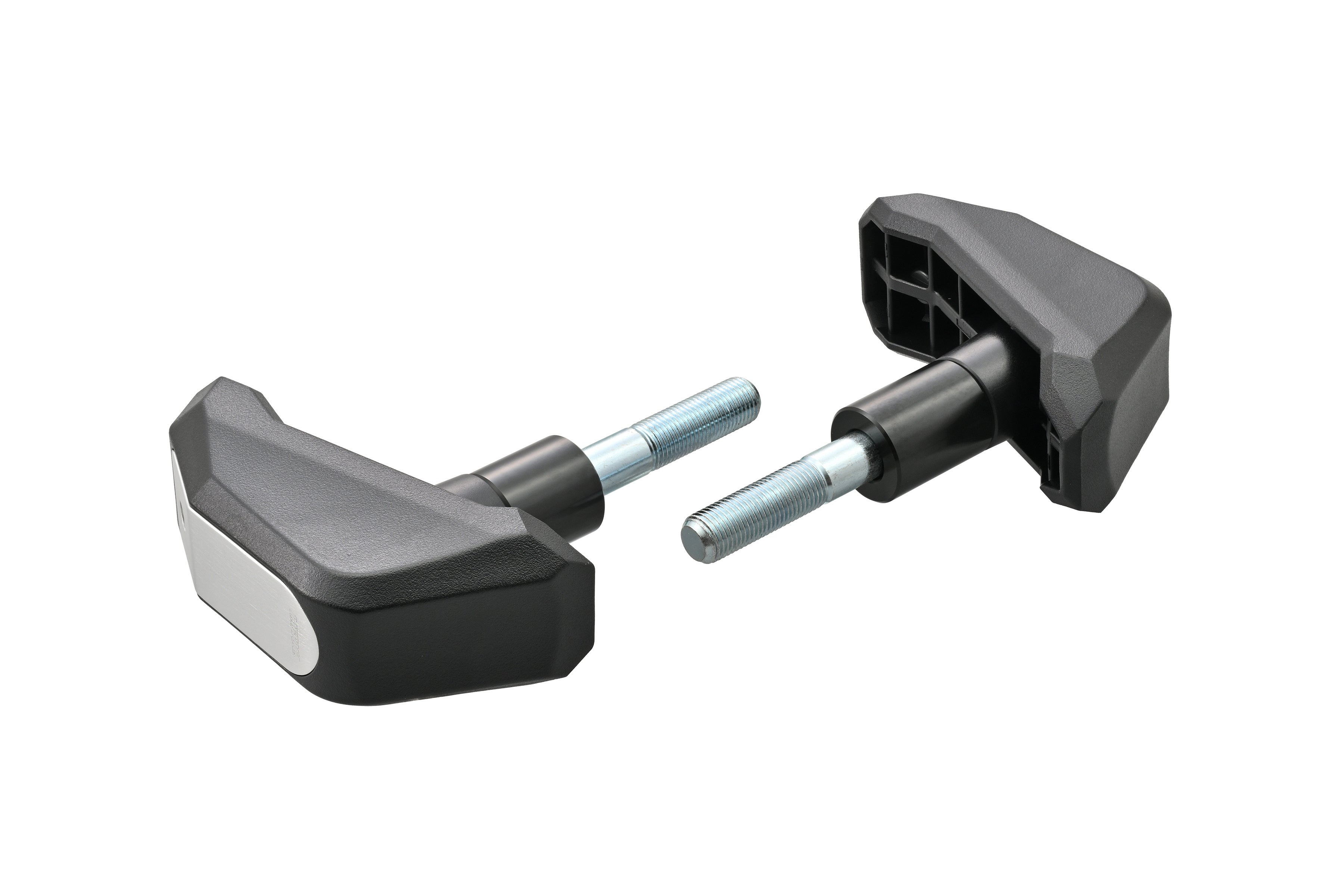 流線形の樹脂パッドが転倒時の衝撃を吸収しマシンへのダメージを緩和。アルミプレートは転倒時のボルト変形を防ぎ、機能とドレスアップを両立します。車種毎に適正な張り出し量を設定しています。左右セット。※当社エンジンガード(品番:62415)の同時装着が可能です。(意匠登録 No.D1762940)