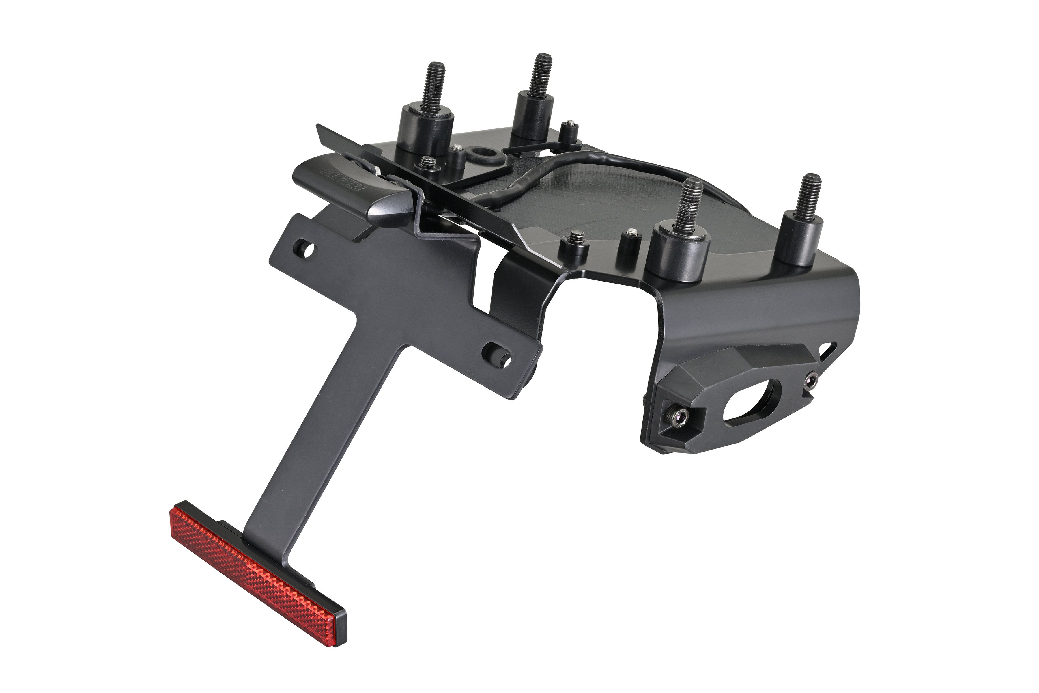 テール周りをコンパクトにまとめるフェンダーレスキットです。ウインカーは純正を移設して使用します。車検対応の小型のLEDライセンスランプ、スリムタイプのリフレクターが付属。簡単に装着できるボルトオン&カプラーオン設計です。別売のM1ウインカーベース(93393)を組み合わせることで、社外ウインカーへのカスタムも可能。※マルチウイングキャリア(62573)同時装着不可。